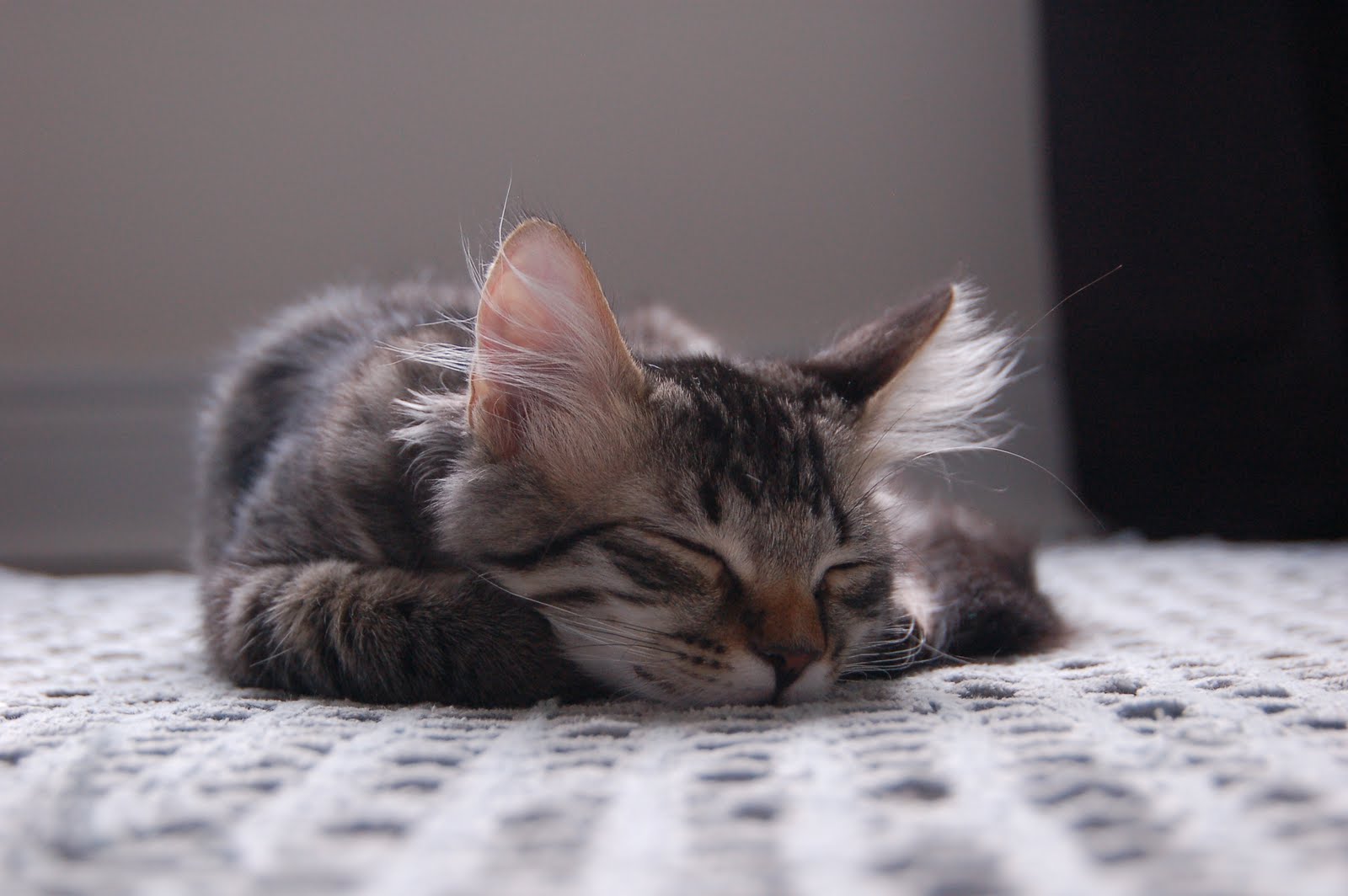 Tired after subduing a piece of denim tied to rope.