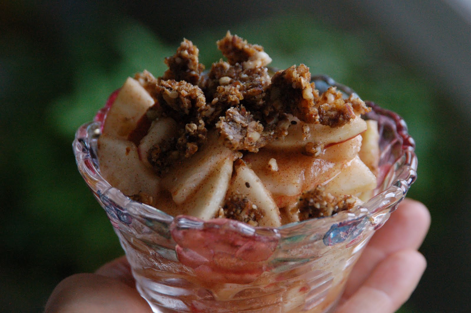 To serve, put the apple mixture in the bottom of a nice bowl and then crumble the topping over the apples.