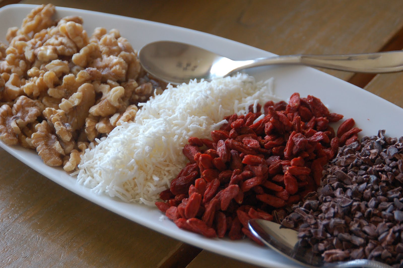 Fantastic and super healthy treats presented by holistic nutritionista Marni Wasserman on a recent raw food retreat included: fixings for making nori rolls, raw pancakes with blueberries and mango, exotic fruits with raw chocolate sauce, many varieties of salad, superfoods, raw cacao pudding, collard wraps, pesto kelp noodles, green juices and smoothies and much, much more!