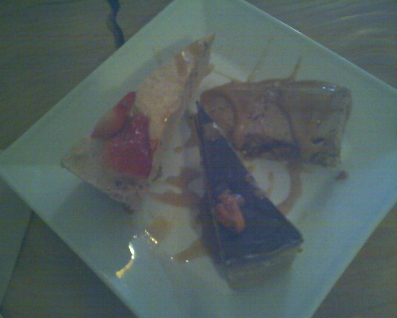 Of course, we had to sample some of the deserts. Shown here is a trio consisting of strawberry cheesecake, chocolate mint pie and pecan pie. All three were really delicious, but rather rich and filling after enjoying the main course. I think maybe splitting just one would have been a better idea in retrospect.